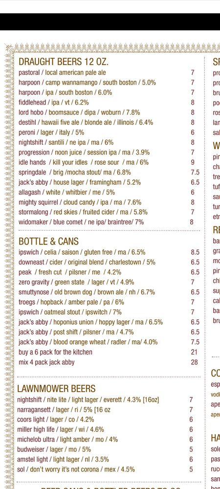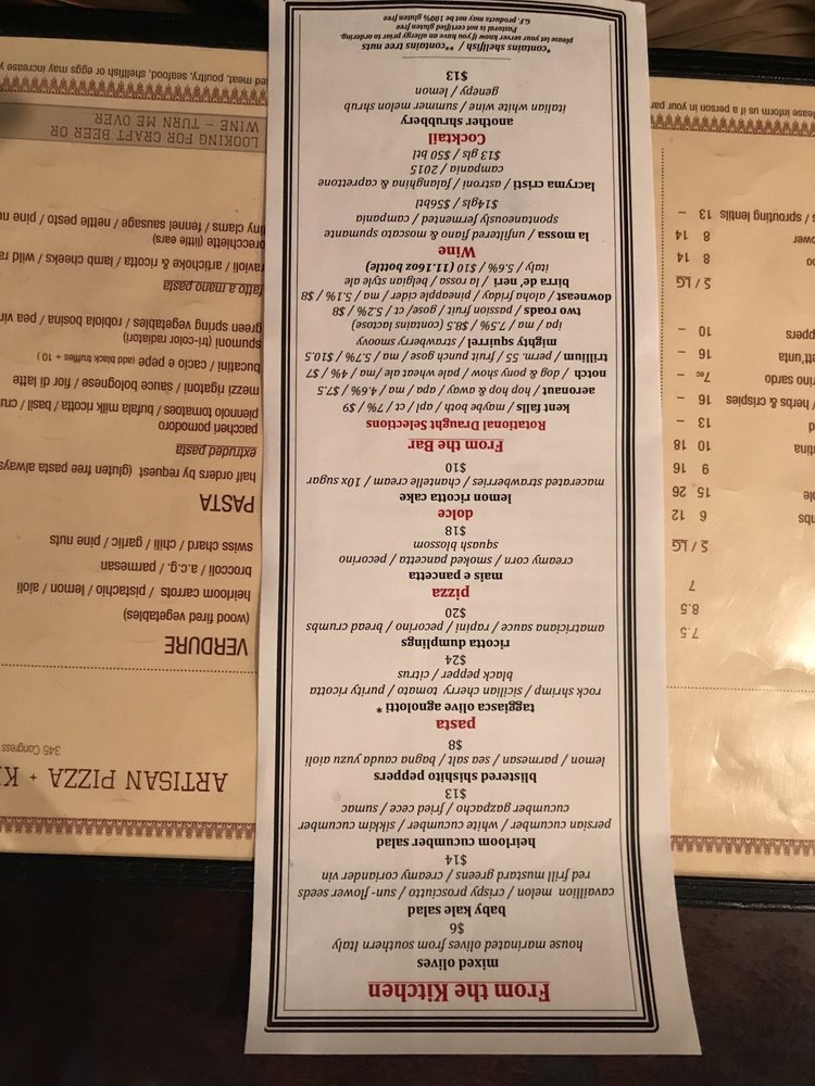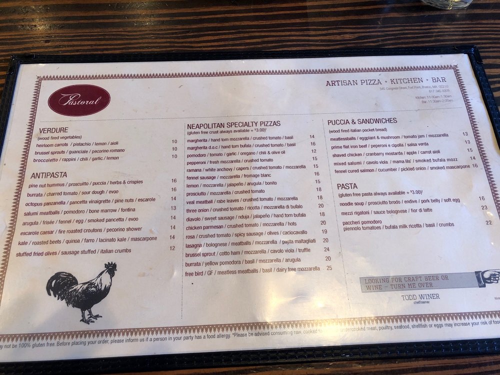 Pastoral - Artisan Pizza, Kitchen & Bar Menu
